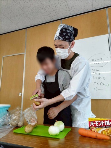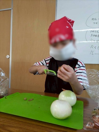 10月13日に、放デイのみんなでカレー作りの活動を行いました!にんじん、たまねぎ、じゃがいもの皮むきにも、交代で挑戦しました。子どもたちは皆、集中して取り組むことができました。出来上がったカレーをとてもおいしそうに食べていました。ご自宅からお米を持参していただき、ありがとうございました。子ども達も自分たちで作ったカレーを食べる経験が出来ました!