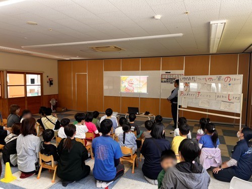 防犯教室後、保護者向けにも佐賀県内で起きている声掛け事案や交通事故などの具体的なお話をしていただきました。ご参加いただいた保護者様ありがとうございました。