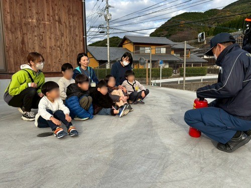 12月12日(金)、火災避難訓練を行いました。初めて参加された方もいらっしゃり、戸惑う場面もありましたが、全員が安全に避難することができました。今回は武雄消防署の方にご協力いただき、消火訓練も実施しました。職員だけでなく子どもたちも体験することができ、とても喜んでいる様子が見られました。今後も万が一に備え、定期的に訓練を続けてまいります。