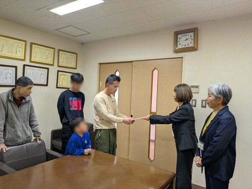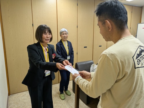 3月17日(火)、JA佐賀県女性組織協議会様より、くろかみ学園・すみよしの里の利用者様へご寄附をいただきました。「おいしいものを食べてください」と温かいお言葉を添えていただき、代表して受け取られた利用者様は「はい、ありがとうございます」と笑顔でお礼を述べられました。いただいたご寄附は、利用者様の食事の充実のために大切に活用してまいります。心のこもったご支援に、職員一同、心より感謝申し上げます。